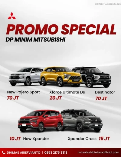 Nikmati promo, cicilan, cashback, dan DP ringan untuk berbagai tipe mobil Mitsubishi.